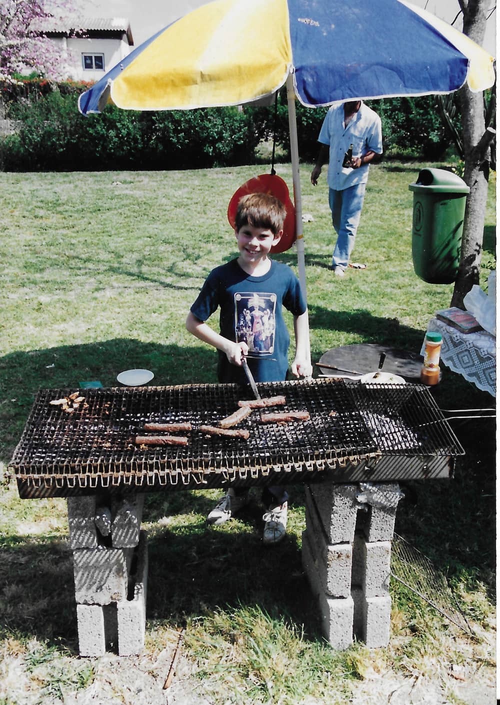 "את יונתן הכרתי עוד מהגן והחיבור איתו בבית הספר היסודי היה טבעי. למדנו באותה כיתה ואני זוכר שהיינו חברים לאורך שש שנות הלימודים. גרנו במרחק של כרבע שעה הליכה אחד מהשני ולרוב היינו נפגשים אצלו בבית, שכן היה זה בית עם חצר מלאה באפשרויות משחק. היינו משחקים כדורגל בדשא שמאחורי הבית או כדורסל על הסל שהיה תלוי בחזית. באחת התקופות היה ליונתן פרויקט של חפירת בור בחצר. אני חושב שזה היה בור בעומק של כחצי מ' ובקוטר מ' והוא היה מאוד גאה בבור הזה. היינו הולכים למחסן בחצר, בוחרים ממגוון כלי העבודה והולכים לבור לעבוד כמה דק' עד שהתעייפנו והלכנו לחפש עיסוק אחר. אצל יונתן אף פעם לא היה לנו משעמם ולא היו חסרים עיסוקים. צעצועים היו לו לרוב וגם במחשב הרבנו לשחק, כאשר כל פעם אחד משחק ואחד יושב על הכסא לידו ומסתכל.. יונתן היה ילד מאוד פעיל ובעל דמיון מפותח להמצאת משחקים. הרבה פעמים הוא היה ממציא איזשהו משחק ומבקש שאני אשתף איתו פעולה. בחופשים היינו מבלים יחד ימים שלמים. הייתי מגיע כבר בבוקר ונשאר עד הערב. הוא תמיד אהב שבאתי, למרות שלעיתים היינו גם רבים תוך כדי משחק. בשעות הצהריים ריבה הייתה חוזרת מהעבודה ומכינה לשנינו ארוחה חמה, או משאירה שתי צלחות במקרר אותן היינו מחממים במיקרו. תמיד הרגשתי אצלו כבן בית. לימים, כשעברנו לגור ברחוב המקביל, הייתי נוהג לקפוץ אליו הרבה. אחד המנהגים שלי היה לבוא לצפות איתו בסרט. היו לנו מקומות קבועים והייתי נשכב ישר על הספה "שלי", מתעורר מתישהו אחרי סוף הסרט וחוזר הביתה."